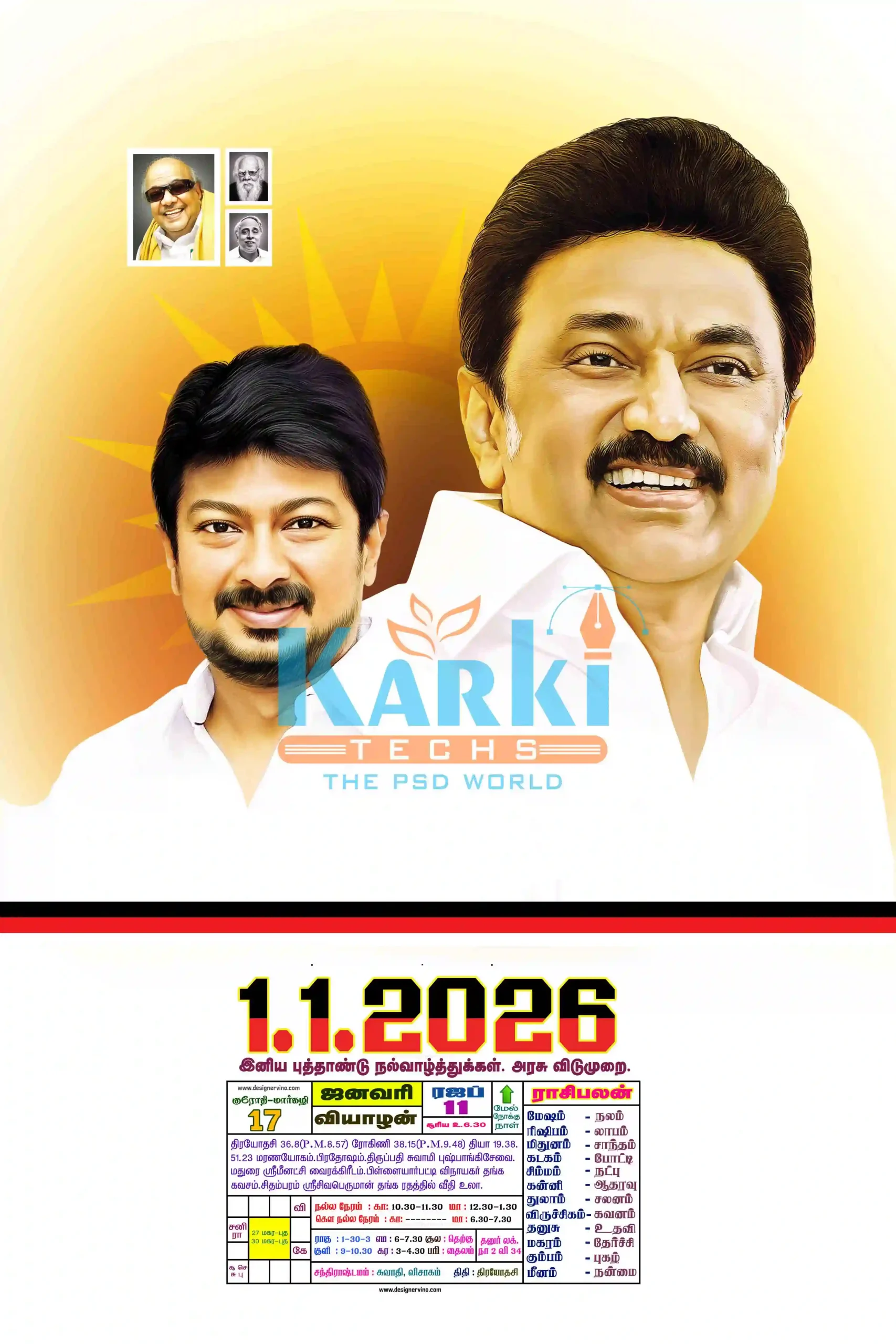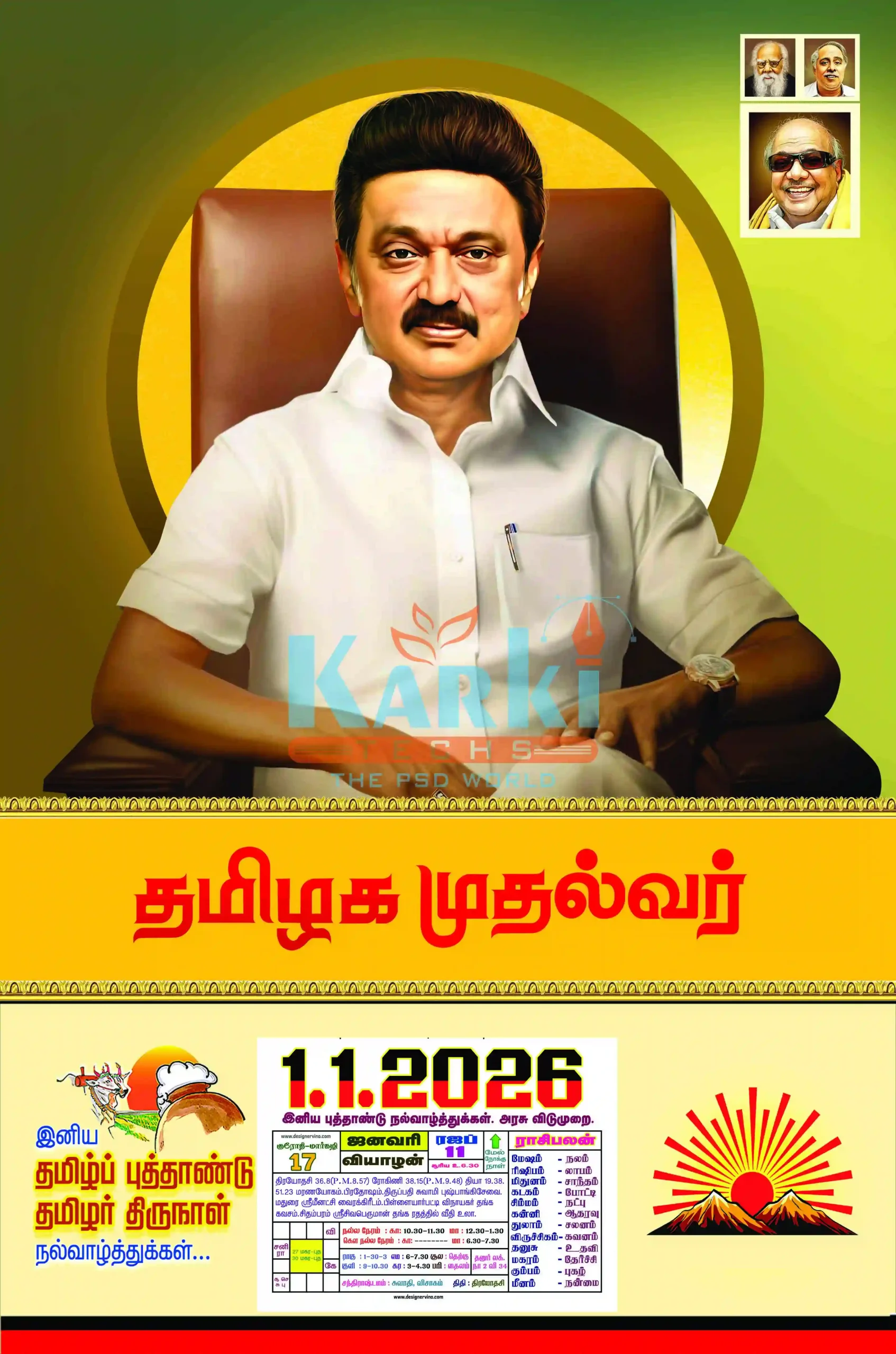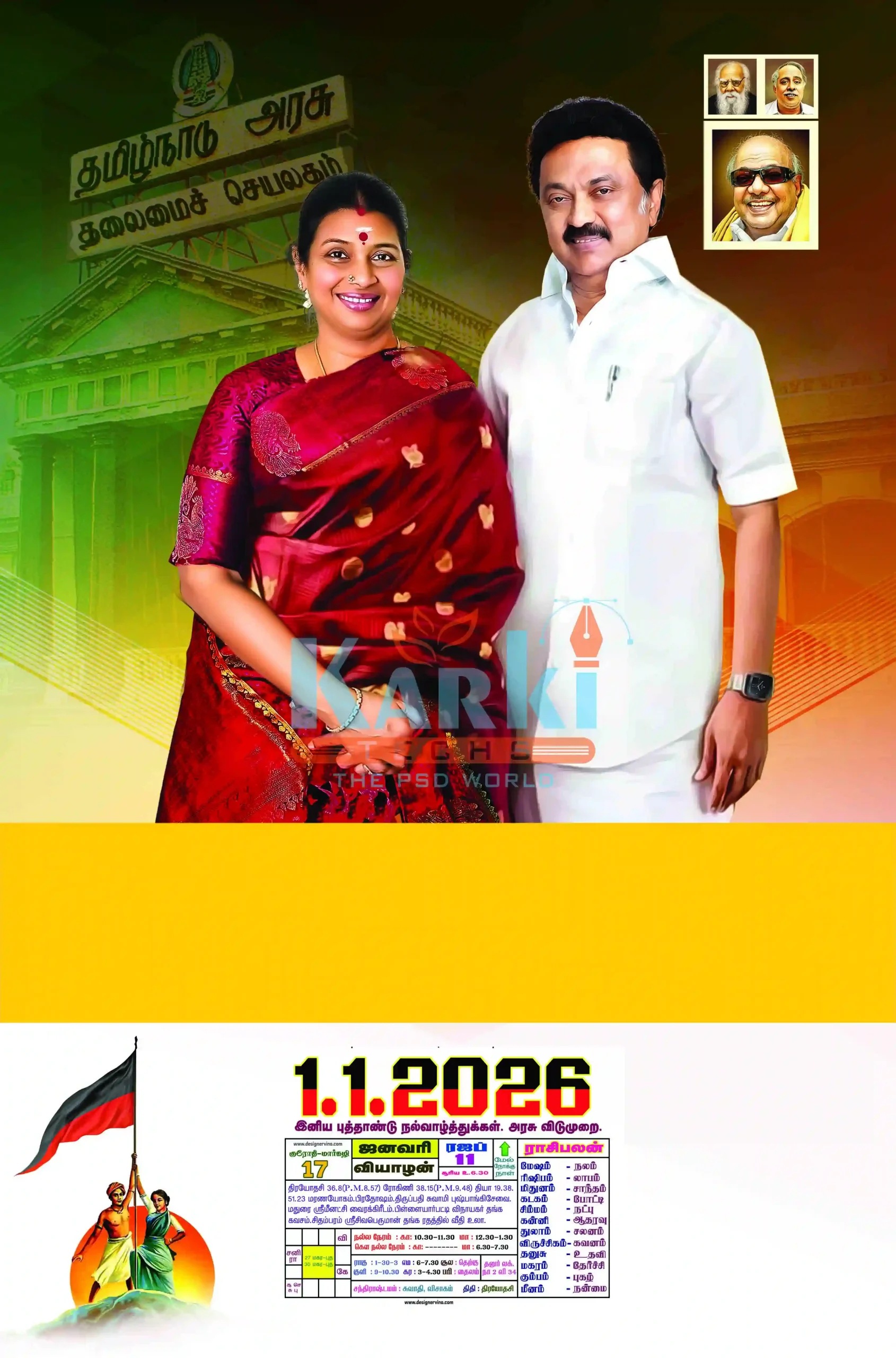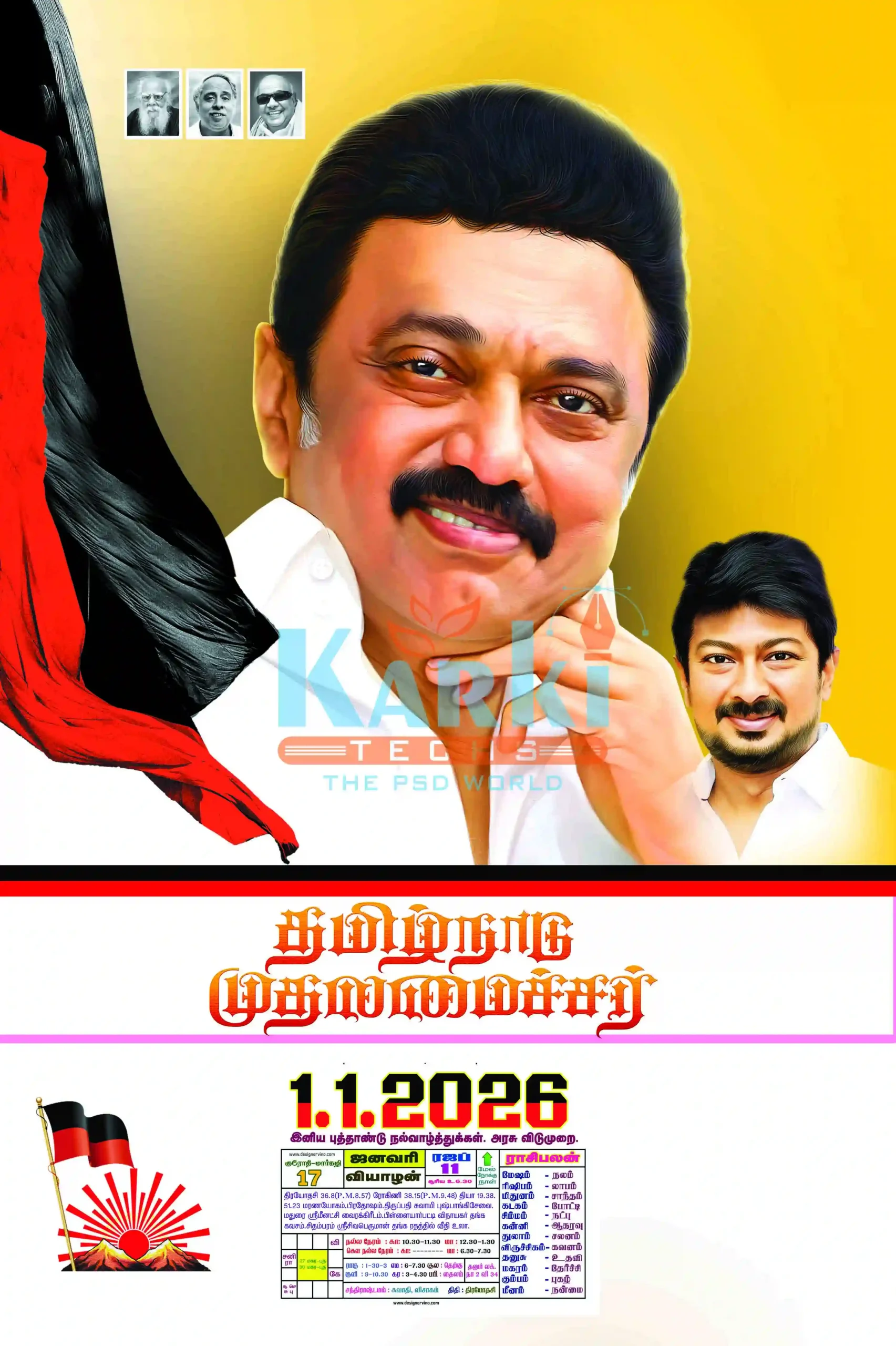 Each design is created with precision, bold colors, and beautiful Tamil typography that represents the spirit of the Dravida Munnetra Kazhagam movement.